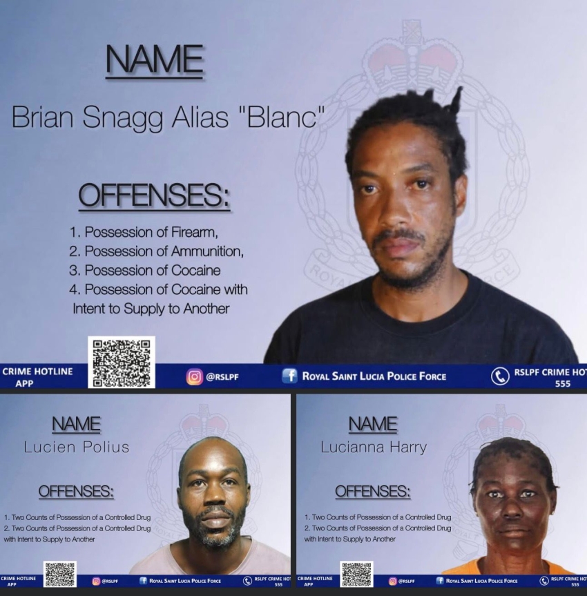 Another Warrant to Search Premises was also executed on the premises of Brian Snagg alias “Blanc” of Dennery (originally of Faux A Chaux, Castries) during the search officers recovered one (1) Luger pistol, seven (7) rounds of 9mm Ammunition and a quantity of Cocaine. Brian Snagg was arrested and charged for the following offences;